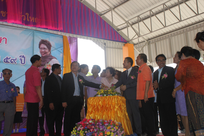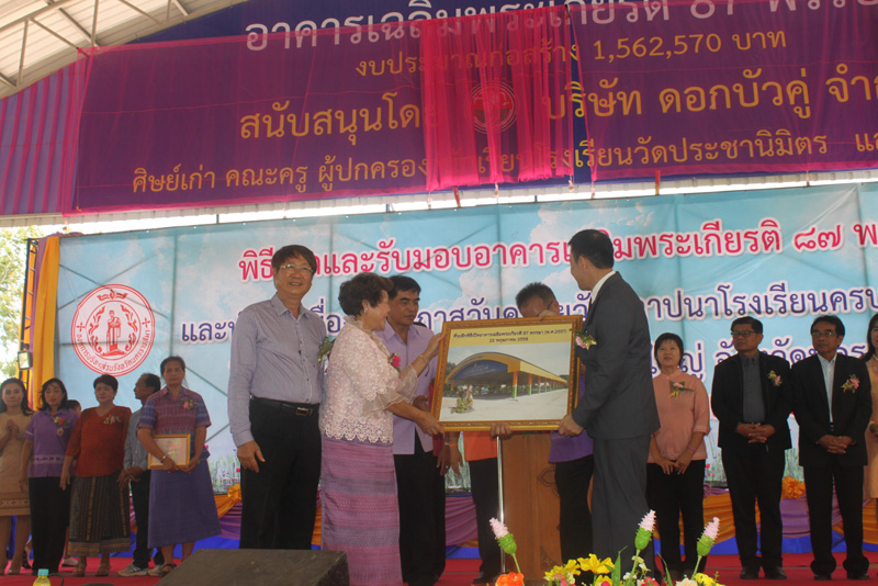 ในการนี้ ดร.สุนันทา ลีเลิศพันธ์ ประธานบริษัทดอกบัวคู่จำกัด เป็นตัวแทนมอบอาคาร และ คุณอนุวัฒน์ คณาจันทร์ รองนายกองค์การบริหารส่วนจังหวัดนครราชสีมา เป็นตัวแทนรับมอบอาคาร