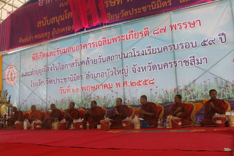 ในการนี้ ดร.สุนันทา ลีเลิศพันธ์ ประธานบริษัทดอกบัวคู่จำกัด เป็นตัวแทนมอบอาคาร และ คุณอนุวัฒน์ คณาจันทร์ รองนายกองค์การบริหารส่วนจังหวัดนครราชสีมา เป็นตัวแทนรับมอบอาคาร