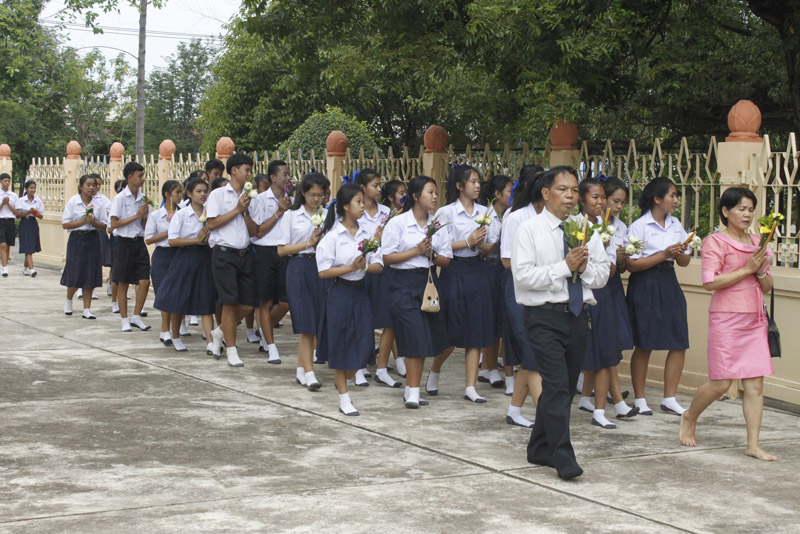 คณะครูนักเรียนโรงเรียนวัดประชานมิตร นำเทียนพรรษา และจตุ ปัจจัยไทยธรรม