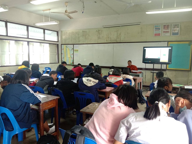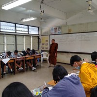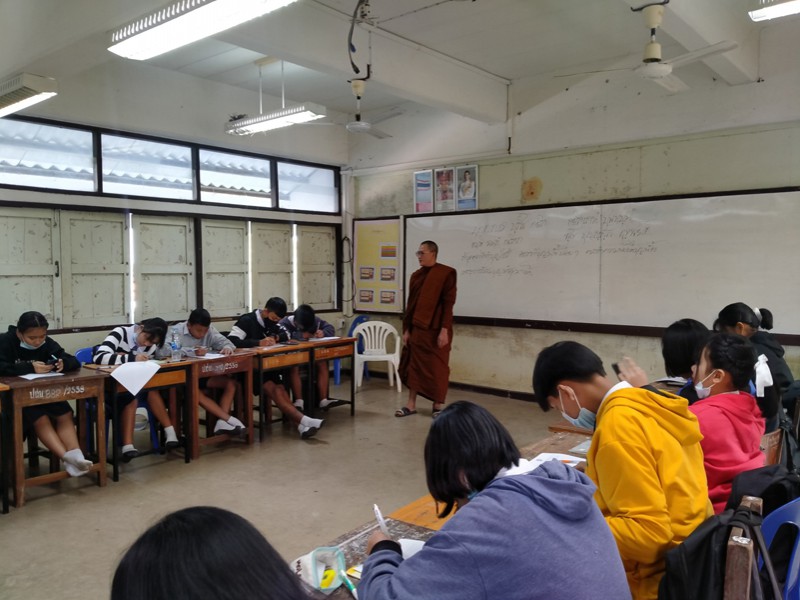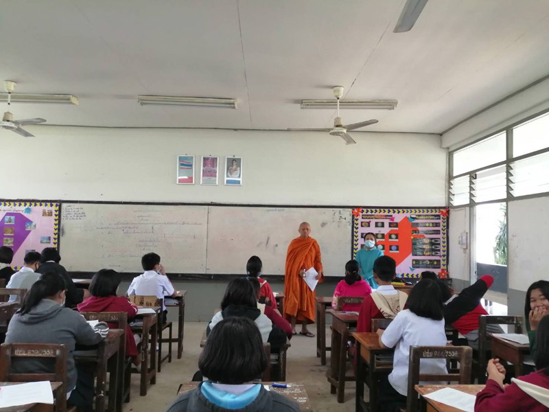 นำคณะครูถวายภัตตาหารเพลแด่คณะสงฆ์ ที่มาเตรียมความพร้อมในการสอบธรรมศึกษาให้กับนักเรียน