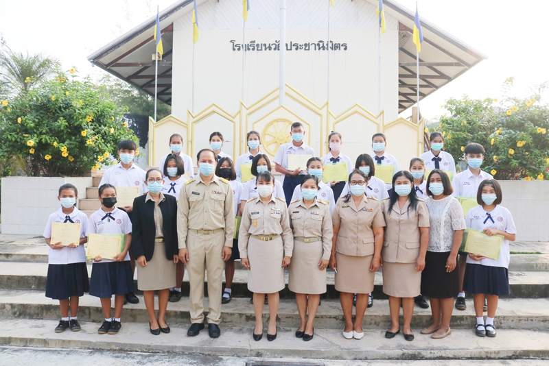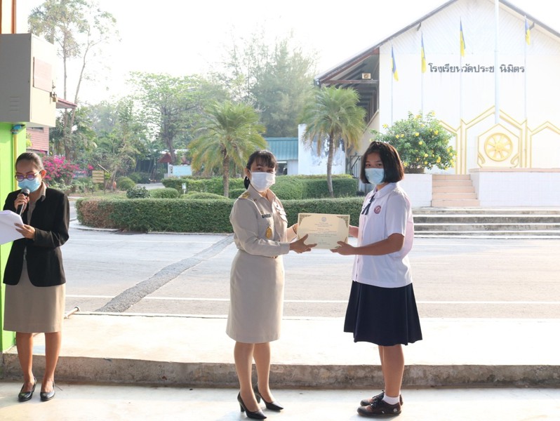 นางสุภิดา ชื่นชมศาสตร์ ผู้อำนวยการสถานศึกษา มอบเกียรติบัตรให้แก่นักเรียนที่เข้าร่วมกิจกรรมการประกวดและแข่งขันกิจกรรมส่งเสริมรักการอ่านโรงเรียนวัดประชานิมิตร