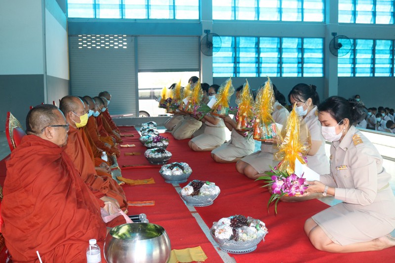 นางสุภิดา ชื่นชมศาสตร์ ผู้อำนวยการโรงเรียนวัดประชานิมิตร นำทีมฝ่ายบริหาร คณครู บุคลากร และนักเรียน ทำบุญตักบาตร พระภิกษุสงฆ์ 9 รูป เพื่อความเป็นสิริมงคล ในวันที่ 8 มีนาคม 2564