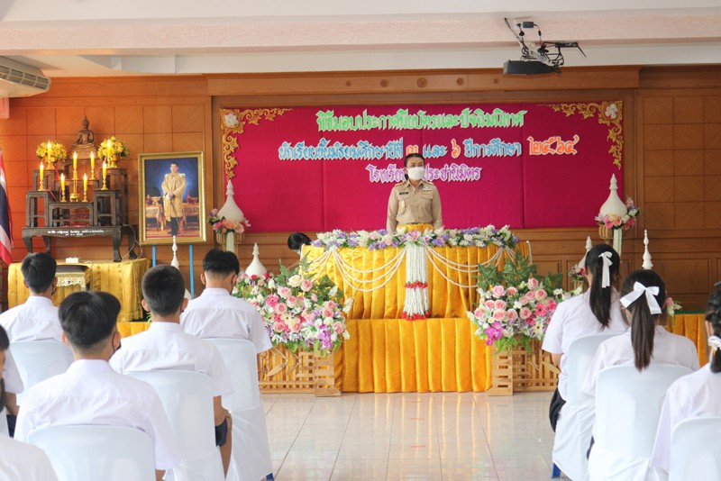 นางสุภิดา ชื่นชมศาสตร์ ผู้อำนวยการสถานศึกษาโรงเรียนวัดประชานิมิตร เป็นประธานในพิธีมอบประกาศนียบัตรและปัจฉิมนิเทศ แก่นักเรียนชั้นมัธยมศึกษาปีที่่ 3 และ 6 ประจำปีการศึกษา 2564 วันที่ 4 มีนาคม 2565