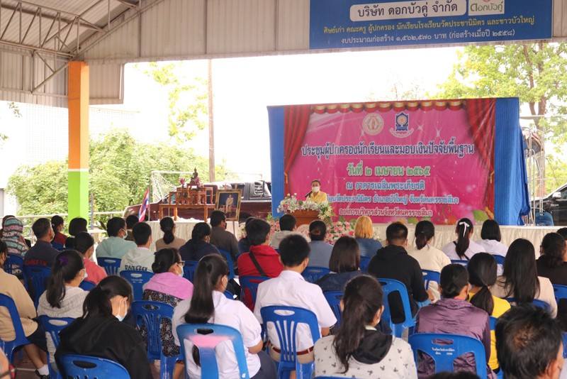 นางสุภิดา ชื่นชมศาสตร์ ผู้อำนวยการสถานศึกษาโรงเรียนวัดประชานิมิตร เป็นประธานในการประชุมผู้ปกครองนักเรียนและรับมอบตัวนักเรียน ระดับชั้นมัธยมศึกษาปีที่ 1 และ 4 ในวันที่ 2 เมษายน 2565