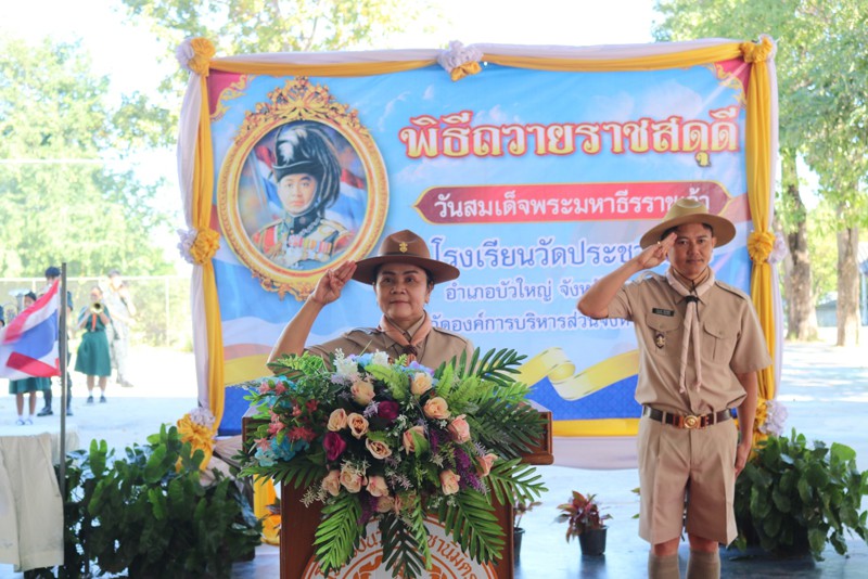 วันที่ 24 พฤศจิกายน 2566 นางสุภิดา ชื่นชมศาสตร์ ผู้อำนวยการสถานศึกษาโรงเรียนวัดประชานิมิตร ประธานในพิธีวางพวงมาลาและถวายราชสดุดี เพื่อน้อมรำลึกในพระมหากรุณาธิคุณพระผู้พระราชทานกำเนิดลูกเสือไทย พระบาทสมเด็จพระมงกุฎเกล้าเจ้าอยู่หัว รัชกาลที่ 6 ประจำปี 2566 พร้อมทั้งนำลูกเสือ เนตรนารี และผู้บังคับบัญชาลูกเสือ ปฏิบัติกิจกรรมจิตอาสาบำเพ็ญประโยชน์ ในชุมชนและสถานศึกษา