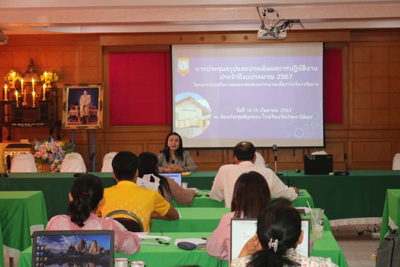 วันที่ 13 - 14 กันยายน 2567 นางสุภิดา ชื่นชมศาสตร์ ผู้อำนวยการสถานศึกษาโรงเรียนวัดประชานิมิตร ประธานเปิดกิจกรรมประชุมสรุปและประเมินผลการปฏิบัติงาน ปีงบประมาณ 2567 โครงการส่งเสริมงานแผนงานและงบประมาณเพื่อการบริหารจัดการ เพื่อรายงานผลการปฏิบัติงาน แลกเปลี่ยนเรียนรู้ สะท้อนปัญหาอุปสรรค รวมถึงวางแผนดำเนินการในปีงบประมาณต่อไป ณ ห้องประชุมพิกุลทอง โรงเรียนวัดประชานิมิตร