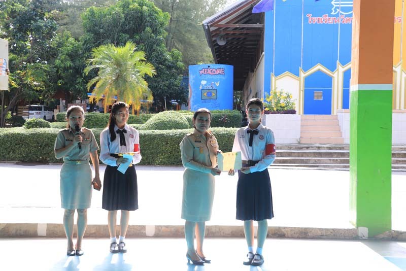 มอบเกียรติบัตรแก่นักเรียนที่เข้าประกวดเยาวชนต้นแบบด้านมารยาทไทยและมารยาทในสังคม