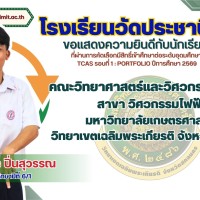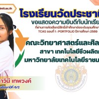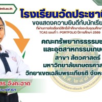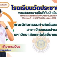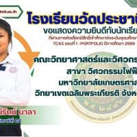 ขอแสดงความยินดีกับนักเรียนที่ผ่านการคัดเลือกมีสิทธิ์เข้าศึกษาต่อระดับอุดมศึกษา TCAS รอบที่ 1 : PORTFOLIO ปีการศึกษา 2569