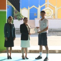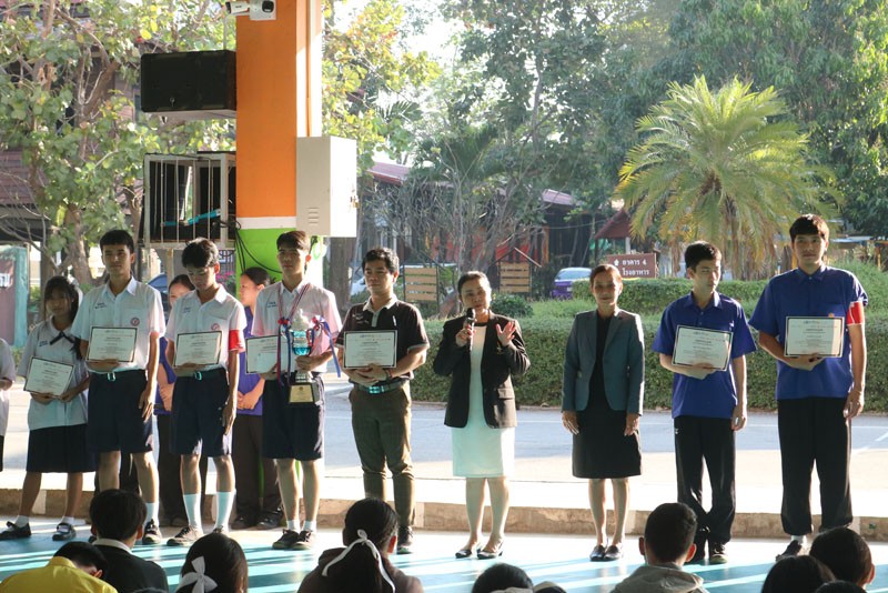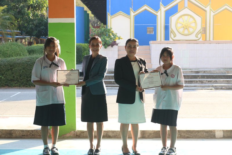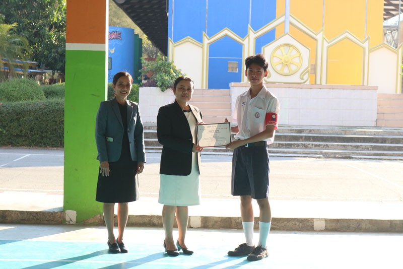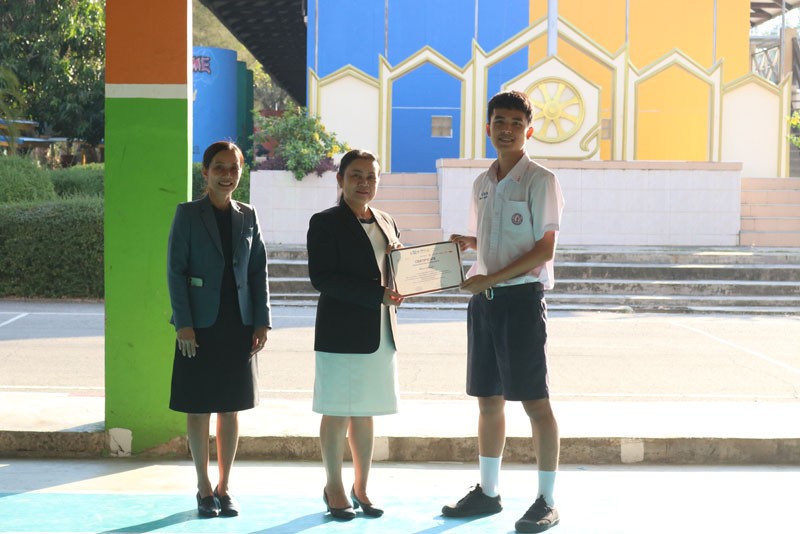 ท่านผู้อำนวยการมอบโล่และเกียรติบัตรแก่นักเรียน