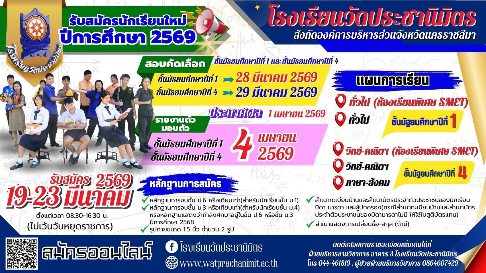 ประกาศด่วน!! ตามที่เกิดเหตุแผ่นดินไหว เมื่อวันที่ 28 มีนาคม 2568 เพื่อความปลอดภัยของผู้เข้าสอบคัดเลือก ผู้ปกครอง ครู และบุคลากร จึงขอเลื่อนการสอบคัดเลือกออกไป ทั้งนี้จะกำหนดปฏิทินการสอบคัดเลือกนักเรียนในภายหลัง 28 มี.ค. 68