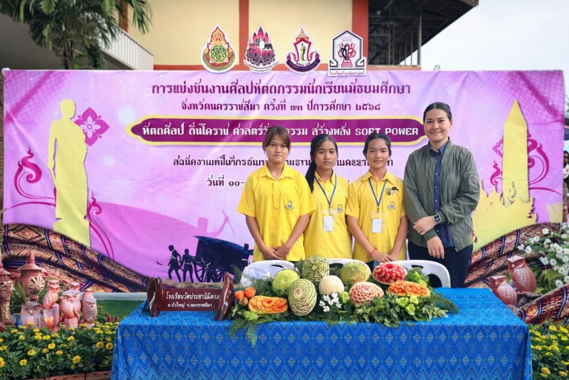 1. รางวัลชนะเลิศ เหรียญทอง การแข่งขันแกะสลักผักและผลไม้ ระดับชั้น ม.1-ม.3